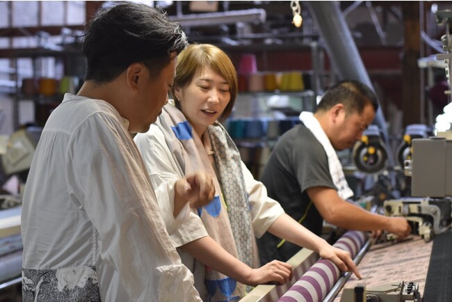播州織を手掛ける創業明治 34 年の「丸萬」は、海外のハイブランドへも生地を卸すテキスタイル