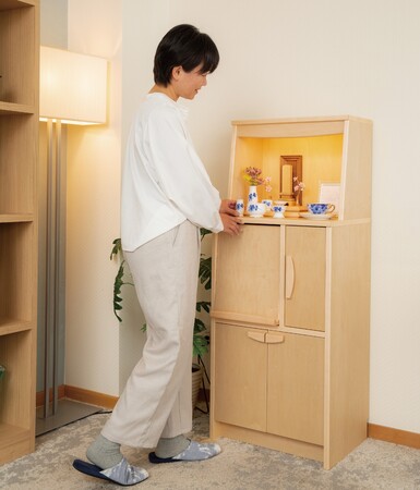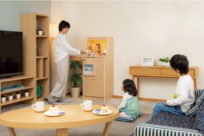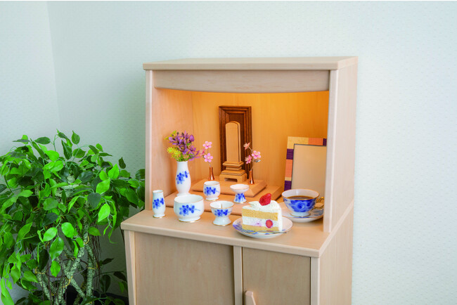 家族が集まる空間と調和するデザイン性とお供えのしやすさを考慮した機能性を兼ね備えているため、気負うことなく自由な祀り方で故人を供養することができます。