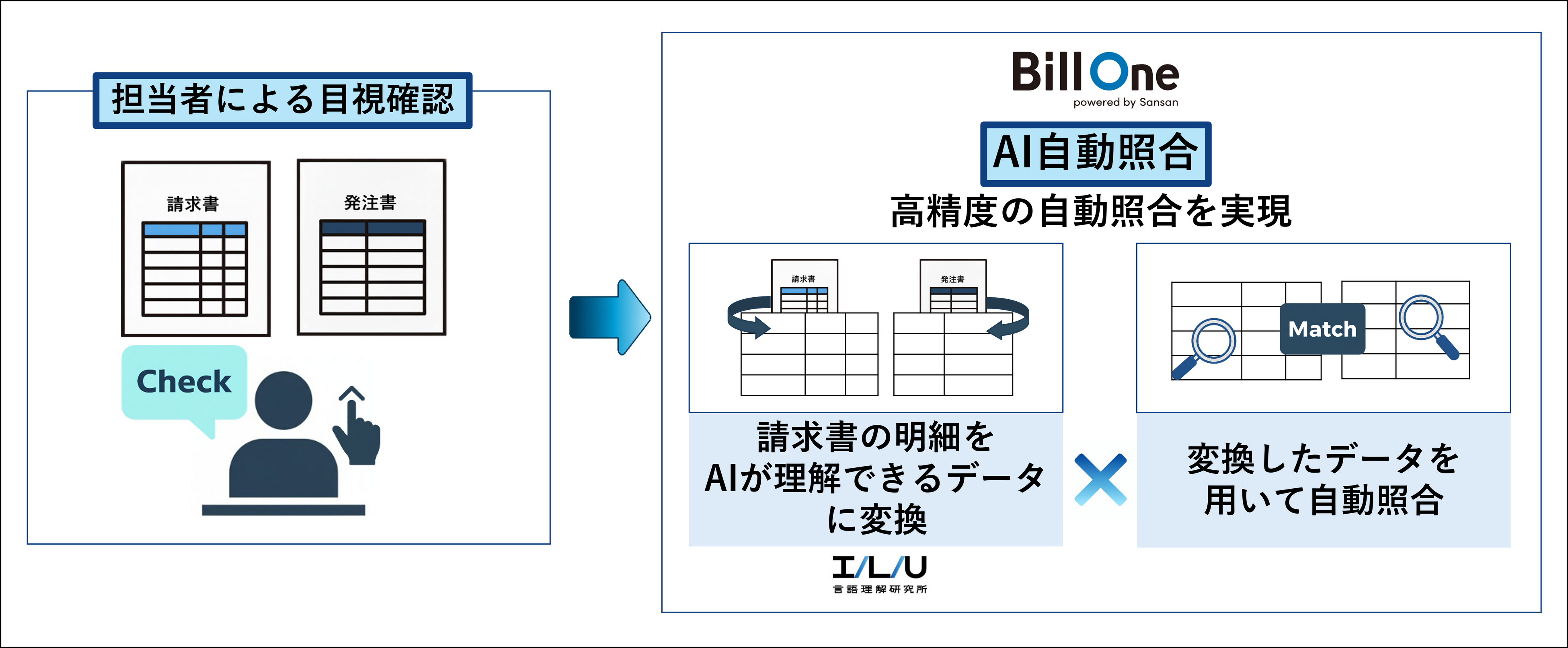 創業23年の徳島大学発AIテック企業である株式会社言語理解研究所(徳島県徳島市、以下「ILU」)は、グループ会社のSansan株式会社(東京都渋谷区、以下「Sansan」)が展開する経理DXサービス「Bill One※1」で2025年11月にローンチされた新機能「AI自動照合」における請求書明細のデータ化技術を共同開発しましたのでご報告いたします。