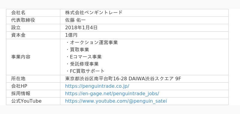 2024年9月に新オフィス(住所:東京都渋谷区宇田川町3-5 Spark SHIBUYA 5階・6階)への移転を発表した株式会社ペンギントレード(以下、ペンギントレード)。新天地の渋谷オフィスでは、2つ目の自社オークションとなる『JRBオークション』(開催日時:2024年9月26日10:00〜)についても開催予定です。