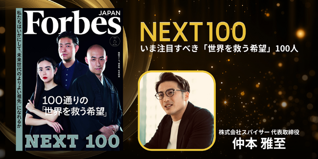 株式会社スパイサー(本社:東京都渋谷区 https://www.spicer.jp/ )はForbes Japanが発表した『NEXT100 世界を救う希望100人』に弊社代表取締役 仲本 雅至が選出されたことをお知らせいたします。