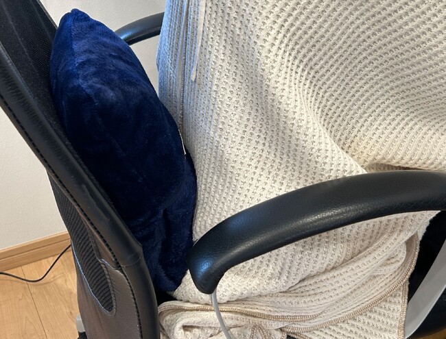 *オフィスの椅子の背もたれに。寒い日はひざ掛けに早変わり