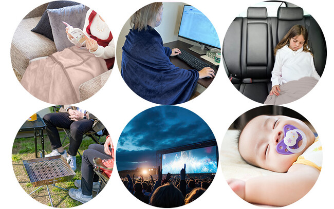 ひろげてブランケット、まるめてクッションのQruneket[くるんけっと]。2WAYスタイルをベースに、いつでもどこでも、多彩なシーンで使える工夫を詰め込みました。