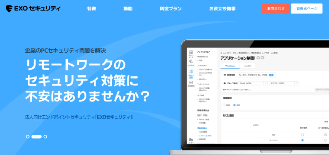 今回受賞した、法人向けエンドポイントセキュリティ「EXOセキュリティ」は、情報漏洩対策(DLP)とIT資産管理、ウイルス対策まで、企業に必要不可欠なPCセキュリティをオールインワンで解決できる、エンドポイントセキュリティです。