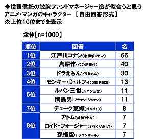 投資信託の敏腕ファンドマネージャー役が似合うと思うキャラクター 1位「江戸川コナン」