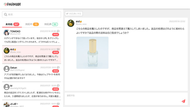 PARKLoTは、Twitterのフォロワーを劇的に増やすSNSマーケティング施策を数多く手掛けているSNSの専門家集団です。社内に蓄積した経験やノウハウを「問い合わせ一括管理ツール」の開発に注ぎ込み、使いやすい理想的なインターフェイスを実現します。