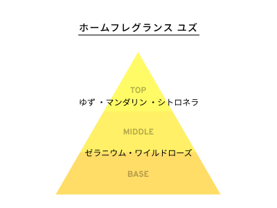 ・ゆず…甘さのなかにほのかな苦みがあるゆずの香りは、日本人には古くからなじみのあるもの。明るさやあたたかさが感じられます。高知県産のゆず精油を使用しています。