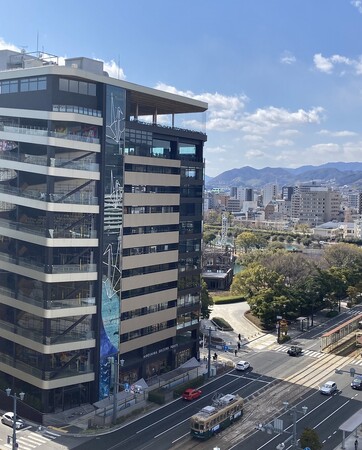 ●原爆ドームそばに立ち、緑豊かなまち並みを見渡すおりづるタワー。復興を遂げ、発展し続ける広島を発信している。