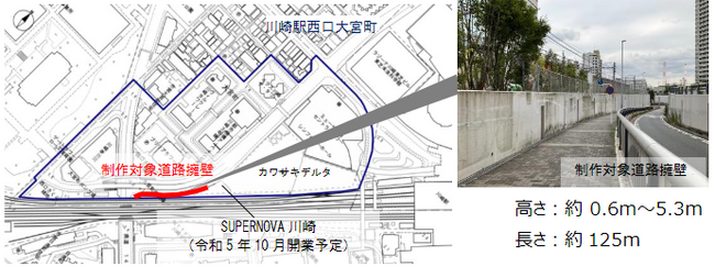 市制100周年をむかえるにあたり、まちなかで、誰もがアートを体験、体感し、楽しむことができる取組として、川崎駅周辺で醸成されてきたアート資源を活かし、道路擁壁に、ウォールアートを制作します。