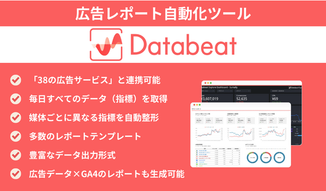 Databeatは、アジト株式会社が開発・提供する広告レポート自動化ツールです。