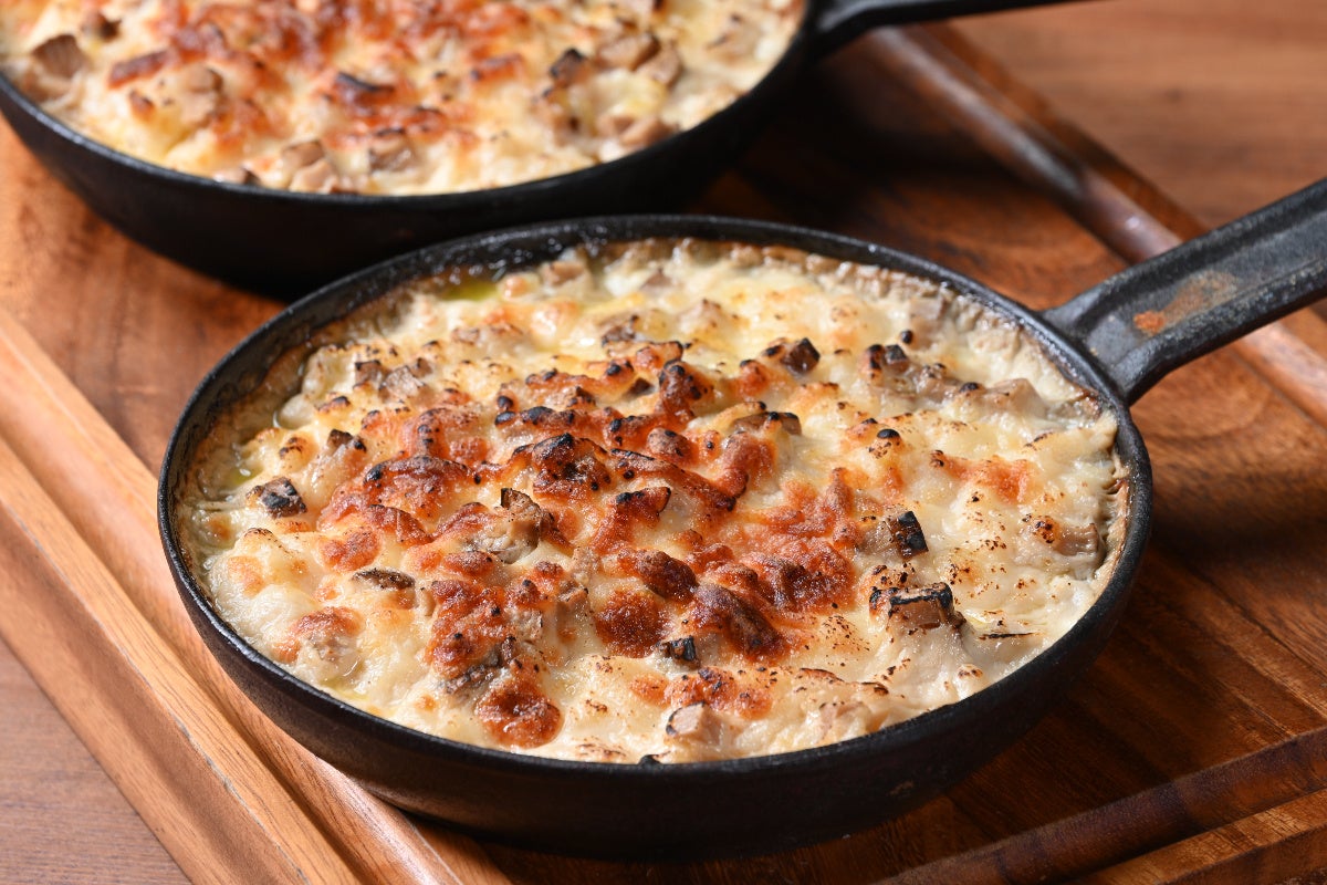 いぶりがっこの香ばしさとしょっつるの旨みを、雪のように白いホワイトソースでまとめた冬仕立ての「いぶりがっことしょっつるグラタン」 。クリーミーなコクの中に燻製のアクセントが光り、あたたかさがじんわり広がる“雪国の味わい”です。