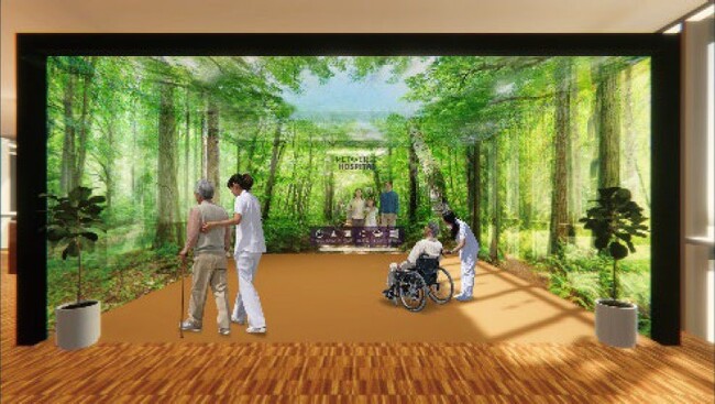 病棟のデイルームにメタバースも体験できる「そと部屋」を設置。室内空間に外部空間の心地よさを取り入れることで、建築環境による認知症患者のQOL(生活の質)の向上およびリハビリへの効果が期待される。