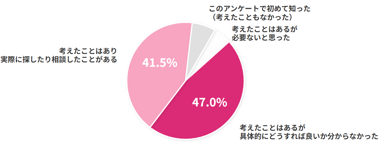 2. 考えたことはあり、実際に探したり相談したことがある(41.5%)