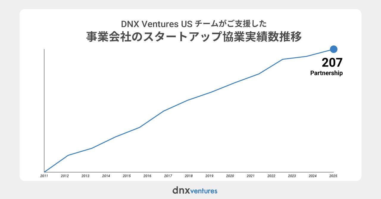 DNX Venturesは、アーリーステージのVCとして創業以来15年に渡りシリコンバレーを中心としたB2Bスタートアップへの投資を実行し、出資者の皆様へ財務リターンを提供してきました。また、30社以上の日本の事業会社LPと伴走をし、日本企業と海外スタートアップの間での事業提携、直接投資、買収を含めた200件を超えるパートナーシップの支援をしています。