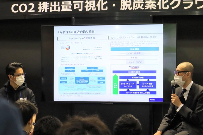さらに、脱炭素化クラウド「ENERGY X GREEN」の活用事例やアライアンス・パートナーの取組事例として、すでに連携を発表している「みずほ銀行」、「シスコシステムズ」、「PwCコンサルティング」、「中部電力ミライズ」の計4社のパートナー企業と当社が対談を行う「特別対談セミナー」を期間中に開催。各業界の課題や取り組み、連携の経緯、今後の展望などを深堀りする形で具体的に紹介しました。