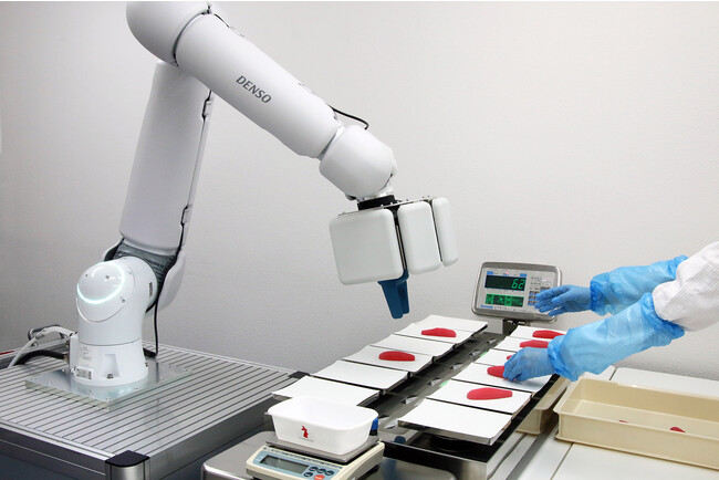 業務提携を元に、「COBOTTA」を使用したハンズオンセミナーによるエンジニアの育成や、食品工場向けのソリューション開発事例として、人協働ロボット「COBOTTA PRO」を用いた冷凍フライ投入システム、協働計量システムの開発も行っています。