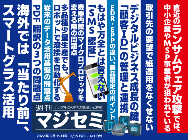 「中小企業が狙われている、ランサムウェア攻撃」「海外では「当たり前」、スマートグラス活用」マジセミ 2022年3月15日(火)から4月1日(金)までのウェビナー番組表を更新