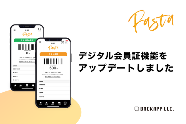 モバイルアプリ開発の合同会社バックアップ(所在地:千葉県習志野市奏の杜2-2-2-1315、代表社員:岡田耕治)は、アプリプラットホーム「Pasta」のアップデートを実施し、「デジタル会員証」機能を更新いたしました。このアップデートにより、 LINEの仮会員証とアプリの本会員証を連携することが可能になります。