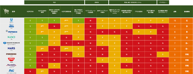 両社とも「NDPE方針」を既に採用し、2点の評価を得ています。