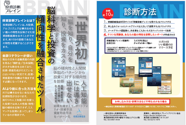 世界初!※脳科学と投資の傾向性を融合させた「投資診断ブレイン」 11/14「いい投資の日」正式リリース決定!!