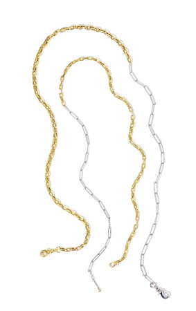 ミラモアのDUO CHAINコレクションは、イエローゴールドとホワイトゴールドのコンビネーションが特徴。ミラモアはイエロー&ゴールドをミックスすることで、現代の多様性を表現しています。クラスプのディテールには金継ぎインスピレーションを施すなど、細部に至るまで丁寧な仕上げとなっています。どのように着用されても様々な表情になることで人気を博しています。