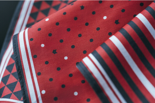 本スカーフとポケットチーフは、フェアトレード商品の企画、生産、販売を行う株式会社スバストラジャパンとの連携により実現したものです。生地にはインド産綿花を使用し、デザイン、プリント、縫製まで全てインドのフェアトレード認証工場で制作し、国際フェアトレード認証ラベル※が付いています。