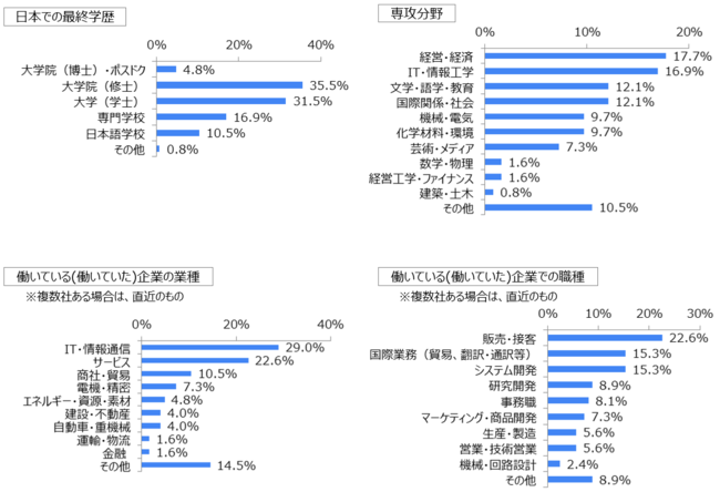 調査目的当社は、日本で就職したい新卒外国人留学生や転職を考える外国人材を企業とマッチングする就職・採用支援サイト『リュウカツ(R)』を運営しております。本調査は、日本での勤務経験がある外国人登録者の志向を調査することで、外国人を採用する企業とのミスマッチ解消や課題解決につなげていただくことを目的に実施しております。