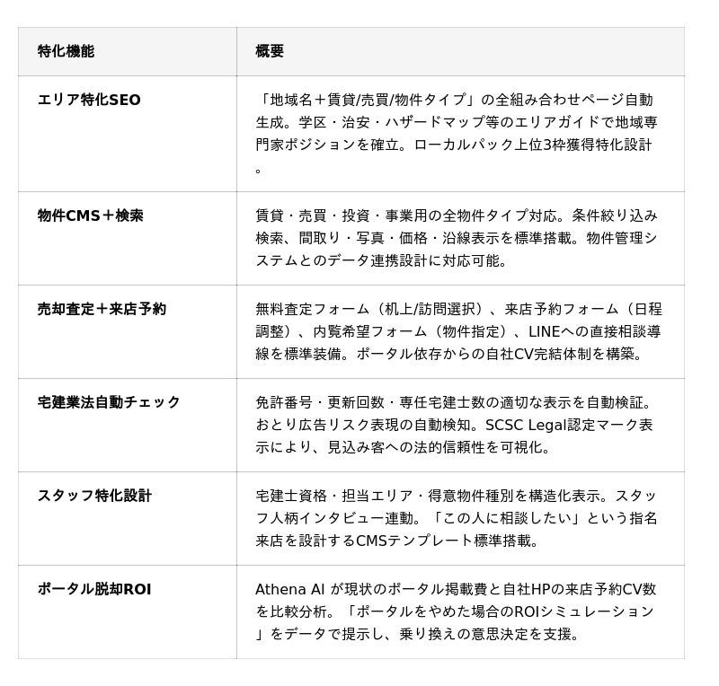 ■ SCSC Estate 3大特化機能──「地域の専門家」を証明する設計