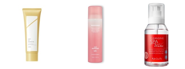 <屋外でも清潔に!水なしで使えるシャンプー&メイク落としや、UVケアアイテム>