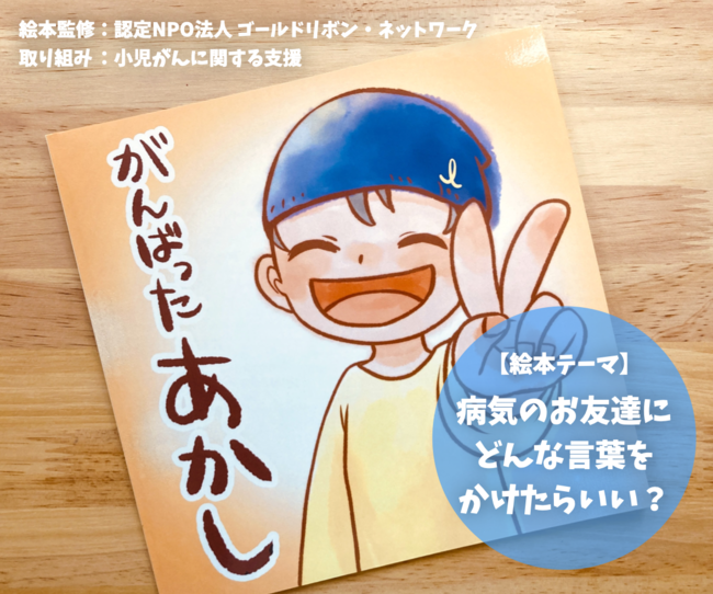 ずっと休んでいたお友達と偶然会い、病気で入院していたことを知った女の子。病気がきっかけとなって帽子をかぶっていることを聞きました。女の子がお母さんにそのことを話すと「それは頑張った証なんだよ」と教えてくれました。当事者ではなくお友達の視点で描かれた物語です。