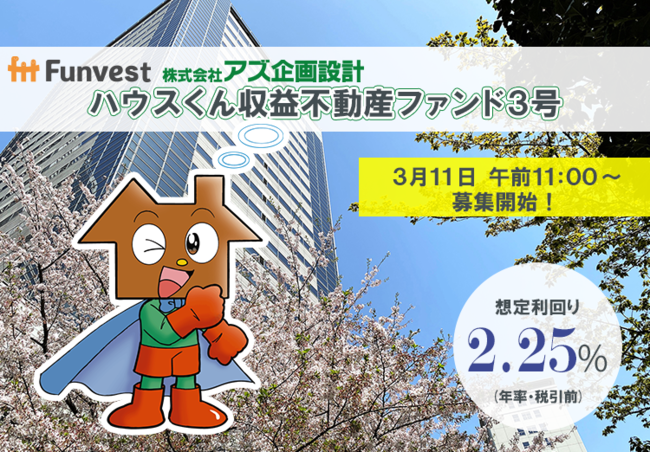 貸付型クラウドファンディング「Funvest」3/11より新ファンド「ハウスくん収益不動産ファンド3号」の募集開始