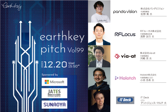 株式会社アースキー(本社:東京都品川区、代表:林 晋之介)は、12月20日(水)15時50分より厳選スタートアップ企業登壇のオンラインピッチイベント「earthkey pitch」を開催いたします。