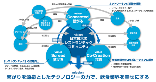 「テクノロジーの創出は、人の繋がりが源泉である」と私達は考え、「人」を繋ぐことで生み出されたオープンイノベーションが「価値あるアイディア」となり、飲食業界の持続的な発展に繋がると確信しています。