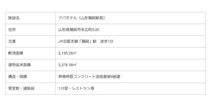 山形県内に2棟目のアパホテル取得-アパホテル〈山形鶴岡駅前〉として8月31日オープン-