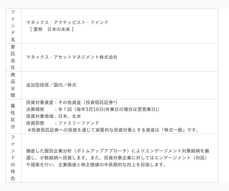 マネックス・アクティビスト・ファンド ページ:https://www.jtg-sec.co.jp/toushin/fund/detail.php?label=monex_activist