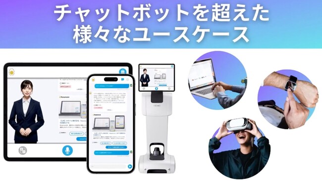 企業独自の運用に対応し、ヘルプデスクや研修といった社内効率化、コールセンターやFAQシステムといった業務効率化、イベントや店舗のコンシェルジュ的な接客自動化と、様々な領域に対応します。