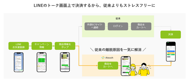 「Atouch」サービスはLINEのトーク画面で商品を選んでそのまま決済まで完了!そんな便利機能を備えたシステムです。