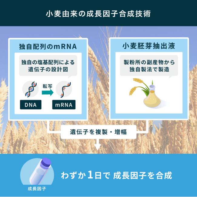 培養肉をはじめとする人工タンパク質の合成技術には、細胞を作る特殊な細胞である幹細胞と、細胞の増殖や分化を促進する「成長因子」という特殊なタンパク質が必要です。ただ成長因子は従来、製造コストの90%以上を占めると言われるほど非常に高額なもので、タンパク質合成技術のボトルネックとなっていました。