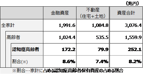 2020年、認知症高齢者が保有する資産は“約250兆円” 高齢化の進展に伴い、2040年には“約345兆円”に