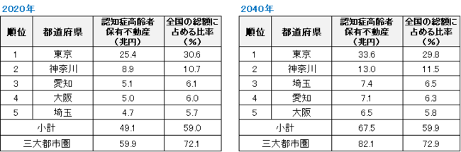 三井住友信託銀行株式会社(取締役社長:大山 一也)は、当社が独自(※1)に推計した認知症高齢者が保有すると推定される全国の「資産総額」、「金融資産」、「不動産」を発表しました。全国の認知症高齢者が保有すると推定される資産総額は、2020年で約250兆円、2040年には約345兆円にまで増加することが分かりました。また、都道府県別でみると、東京都を中心に三大都市圏に集中している一方で、北海道と福岡県が金融資産で5兆円を上回り、また、2020年から2040年への不動産の増加率では、沖縄県が最大、宮城県が次点となるなど地方の意外な結果も浮き彫りになりました。