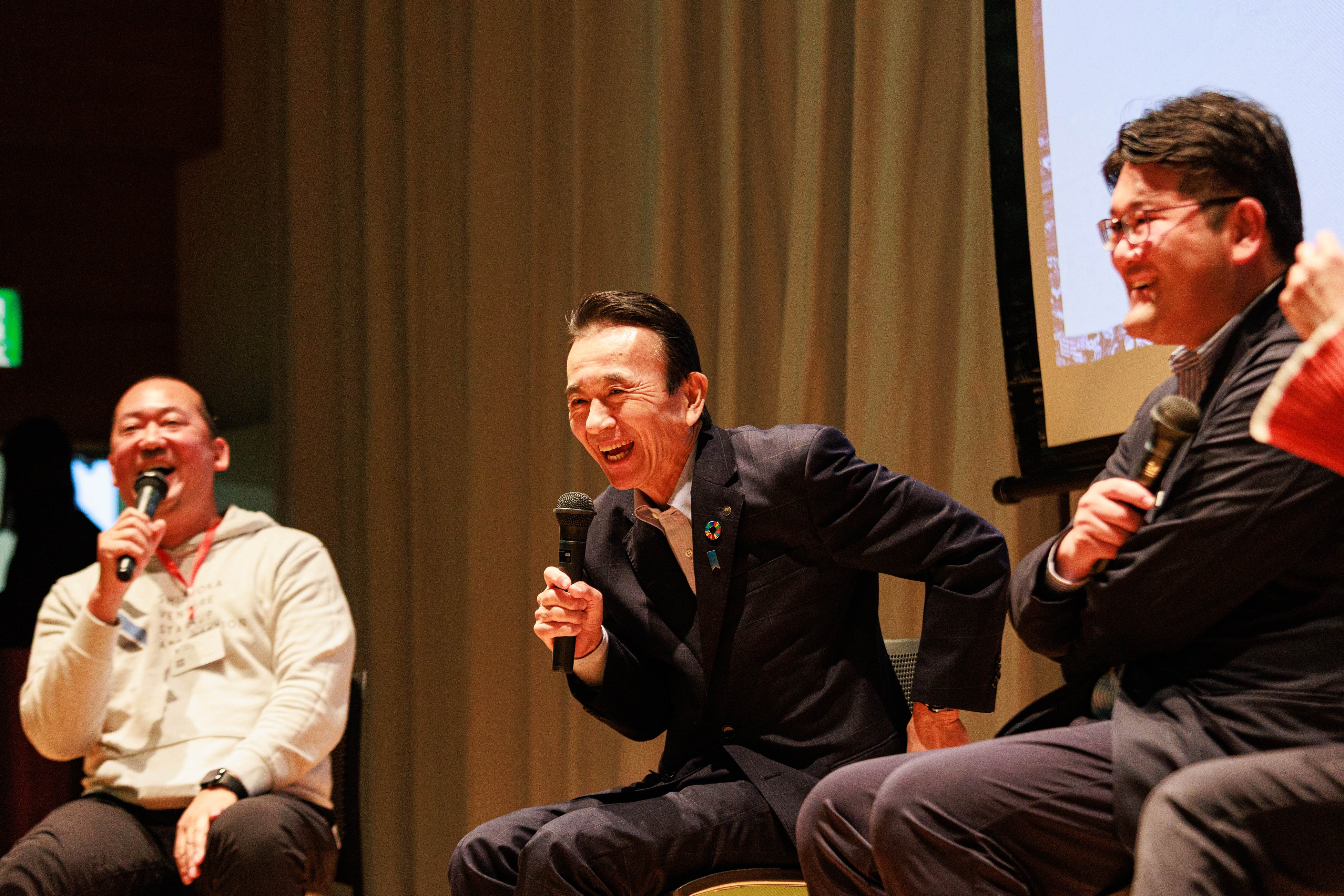 第1部では、SVSA代表理事の篠原がファシリテーターを務め、静岡県知事 鈴木康友氏・裾野市長 村田悠(むらた はるかぜ)氏・副市長 大西千聡氏によるセッションを通じて、県と市が連携したスタートアップ戦略や地域発イノベーションの方向性について議論が交わされました。