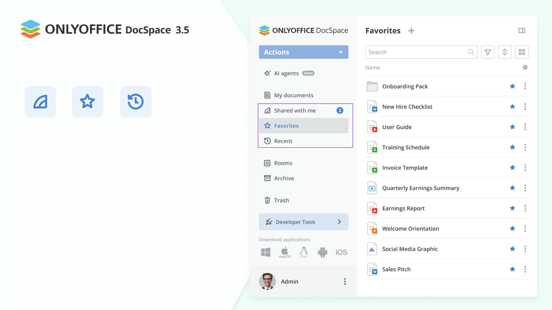 Ascensio Systems Pte Ltd.(シンガポール)は、共同作業プラットフォームであるONLYOFFICE DocSpaceのv3.5を正式にリリースしました。今回のバージョンでは、ファイル管理を強化し、生産性を高め、ユーザー体験をさらに向上させる強力な新機能が多数追加されています。