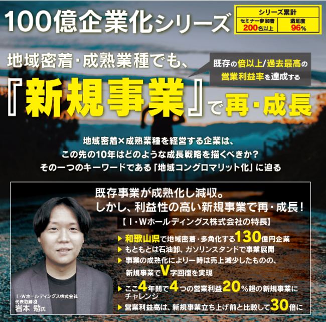 地域密着・成熟業種でも「新規事業」で再成長。年商100億円を目指す経営者に向けたセミナーを開催