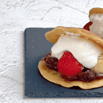 たっぷりの具材をどっしり挟んで包み込むその姿は、まるで頼れる親父。親父の頼もしさと、イケおじの渋みを兼ね備えた、味わい深いスイーツに仕上がりました。