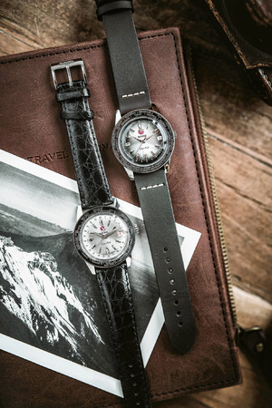 新しい Captain Cook Over-Pole Limited Edition(キャプテン クック オーバーポール リミテッド エディション)は、ステンレススチール製のライスグレイン ブレスレットがスタイリッシュなブラウンのポーチ入りで付属します。ストラップを簡単に交換できる EasyClip(イージークリップ)システムを採用しており、旅先や装い、気分に合わせて付け替えてお楽しみいただけます。まさに現代の旅人に相応しいタイムピースです。
