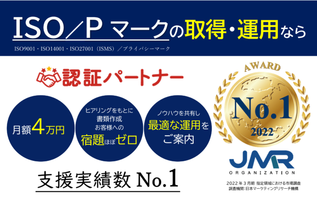 ISO/Pマークの取得・運用・更新をサポートする『認証パートナー』が支援実績数No.1を獲得
