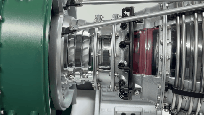 モーターの搭載も実際のエンジンにある「アクセサリーギアボックス」を再現し、モーターを仕込ませています。
