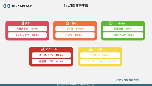 他にもOTONARI ASPでは審査を通過した売れるインフルエンサー2000名と提携しており、成果報酬型でPRを行っております。