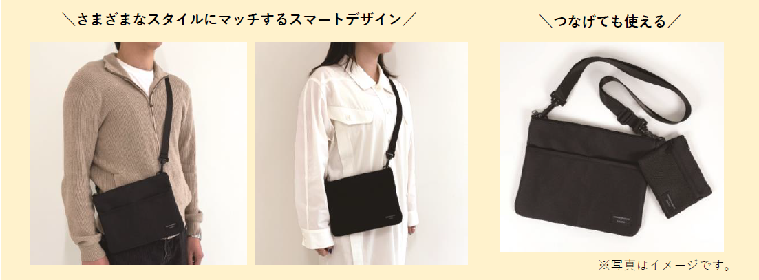 3WAY多機能なのに、スタイリッシュなサコッシュ。取り外し可能な肩紐・持ち手、出し入れしやすい仕切られた前ポケットがうれしいポイントです。