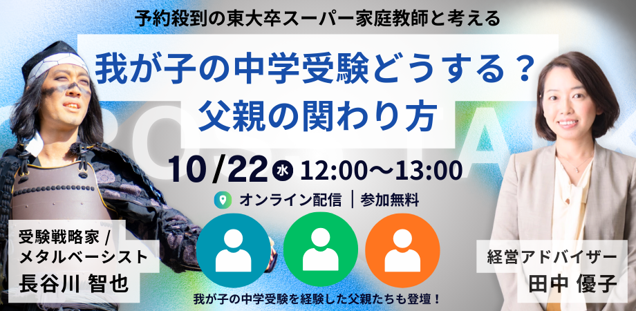 予約殺到の東大卒スーパー家庭教師と考える「中学受験における父親の関わり方」【10/22(水)オンライン開催】